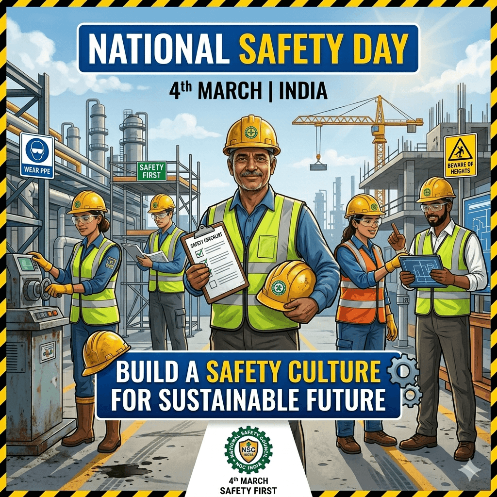 National Safety Day is observed annually on March 4th in India to promote safety awareness, accident prevention, and responsible behaviour across workplaces, roads, homes, and public spaces. The 2026 theme, “Engage, Educate & Empower People to Enhance Safety,” highlights the importance of collective responsibility in creating a safer environment.